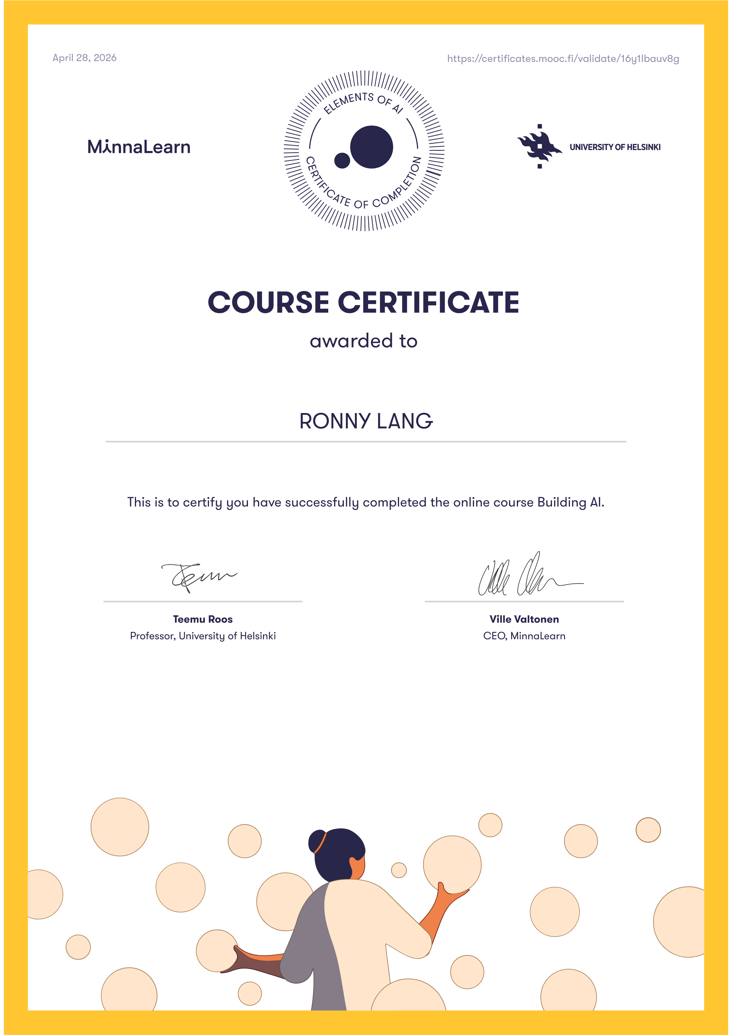 Certificate of Completion, Artificial Intelligence